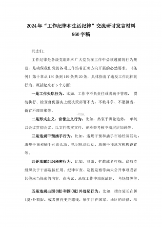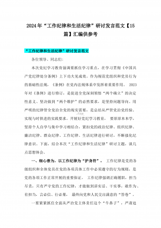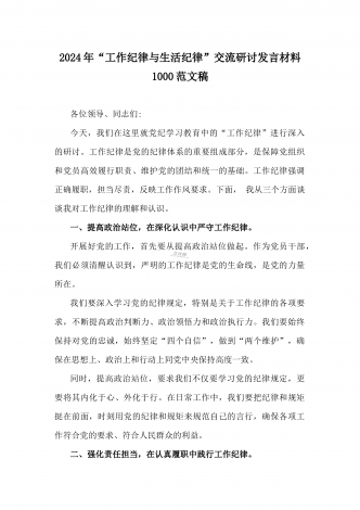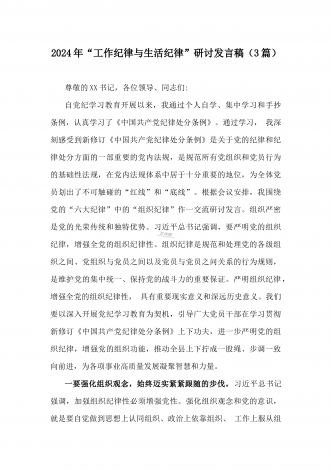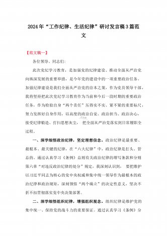 2024年“政治纪律、组织纪律、廉洁纪律、群众纪律、工作纪律、生活纪律”研讨发言范文3份稿供参考
