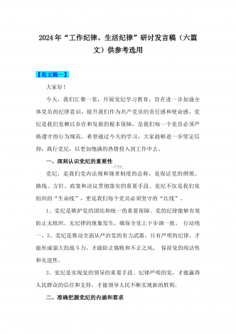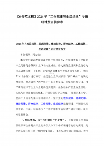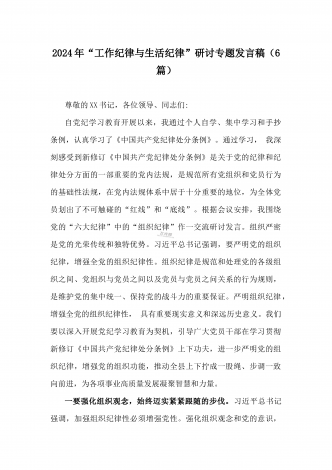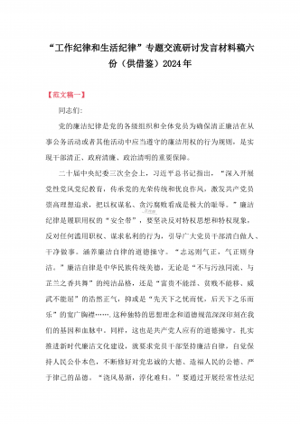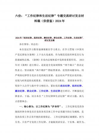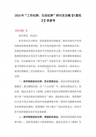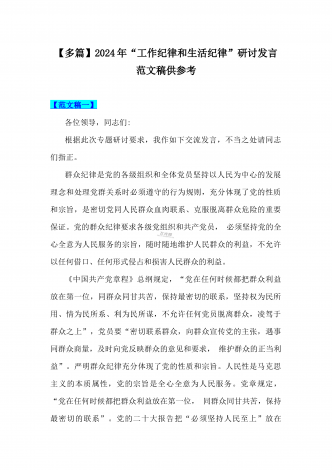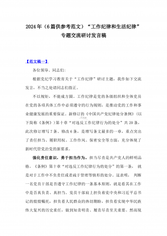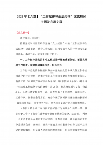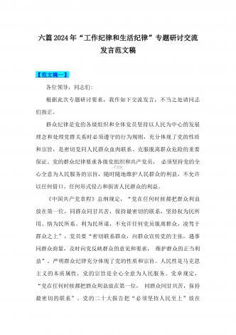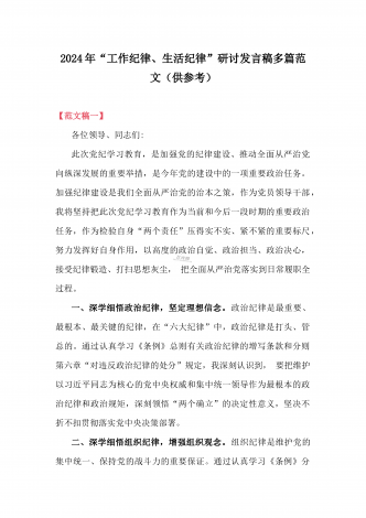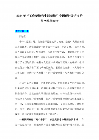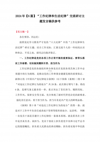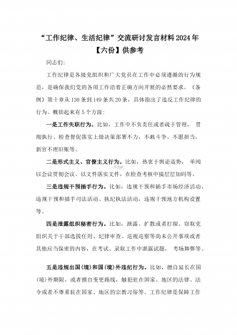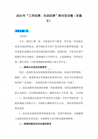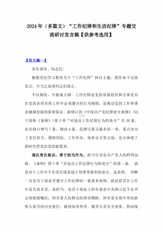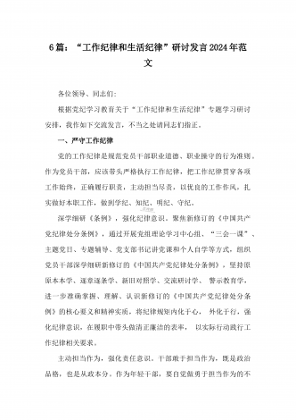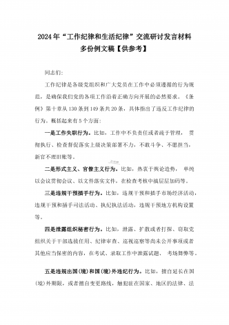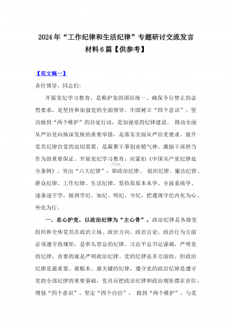 2024年(多篇文)“工作纪律和生活纪律”专题交流研讨发言稿【供参考选用】