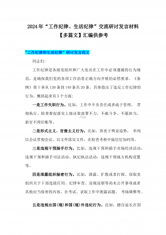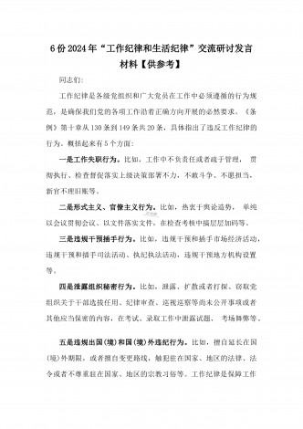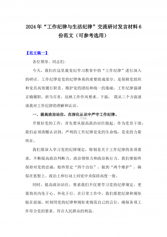 2024年“工作纪律与生活纪律”交流研讨发言材料6份范文(可参考选用)
