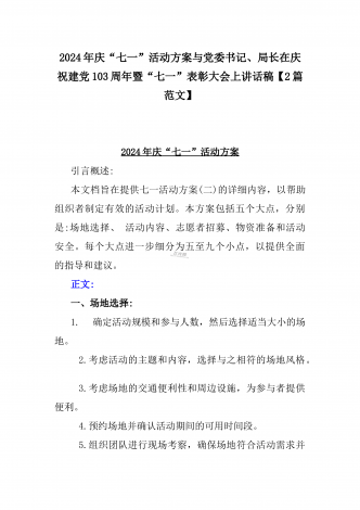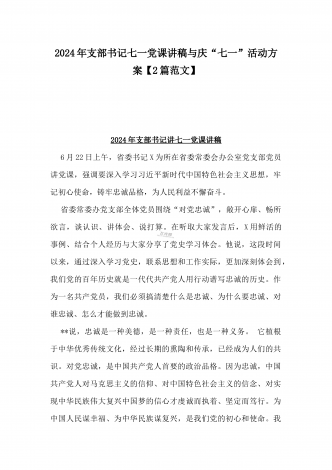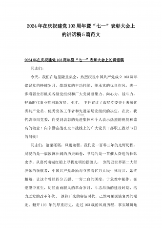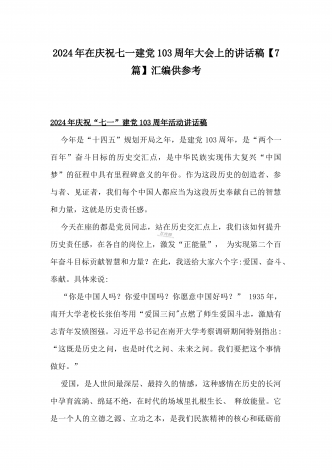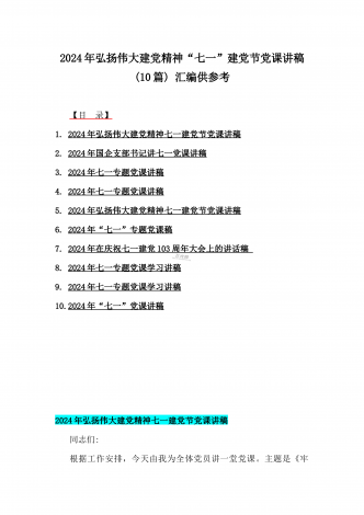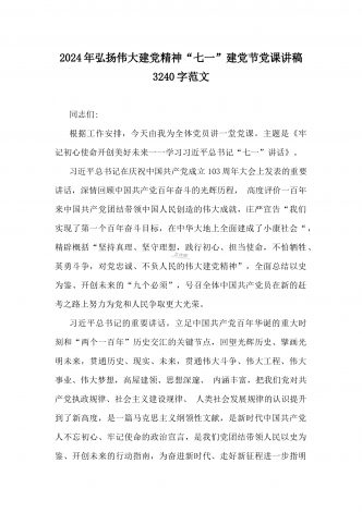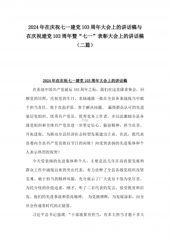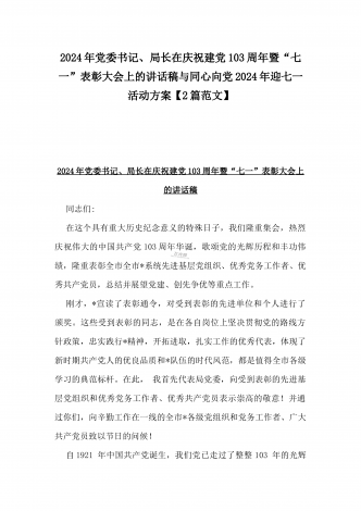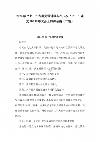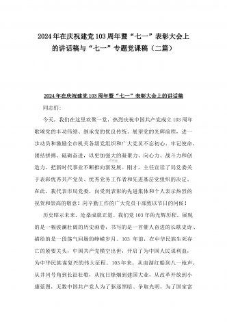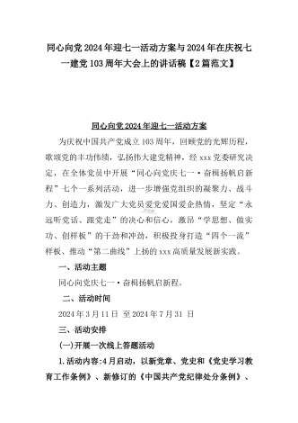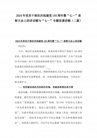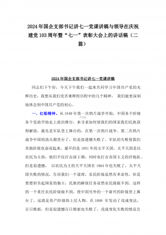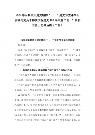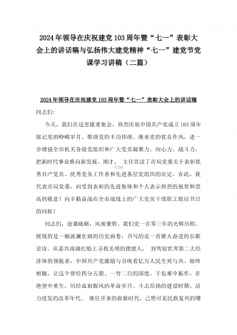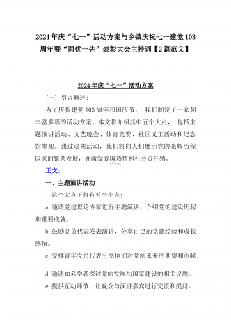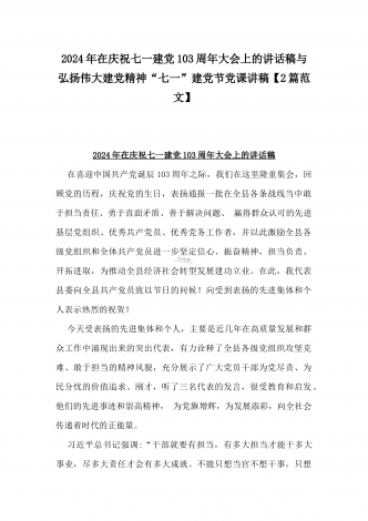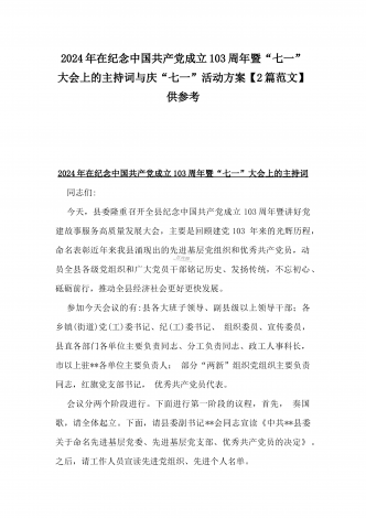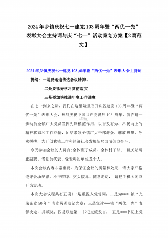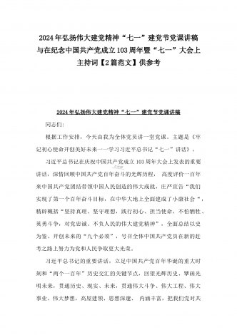 2024年弘扬伟大建党精神“七一”建党节党课讲稿与在纪念中国共产党成立103周年暨“七一”大会上主持词【2篇范文】供参考
