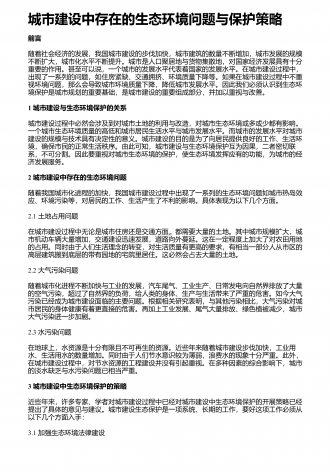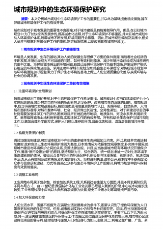 城市规划中的生态环境保护研究 摘要:本文分析城市规划中生态环境保护工作的重要性,并以此为基础提出相应措施,旨在促进城市环境保护工作的有效开展。城市规划对于城市发展的重要性不言而喻,对于城市建设具有统筹指导作用。但是,在以往城市规划中,为了加快经济发展步伐,提高城市化进程,对于生态环境保护不够重视,并未在城市规划中纳入环境保护体系,随着城市不断发展,环境问题日益暴露。因此,在城市规划编制及实施中,相关人员应当提高对环境保护工作的重视,制定解决措施,以便改善现有城市环境[1]。 1 城市规划中生...