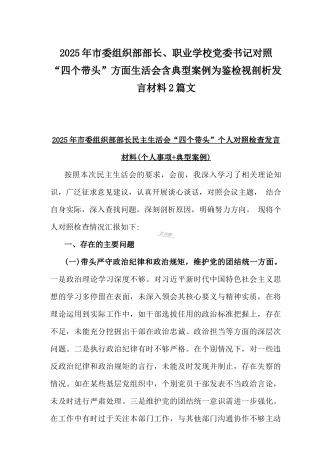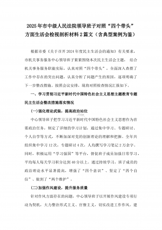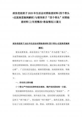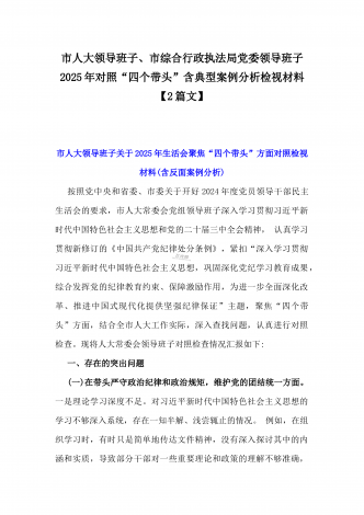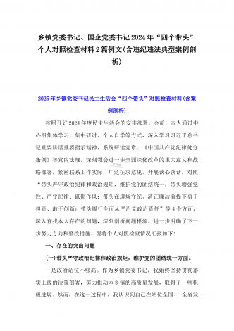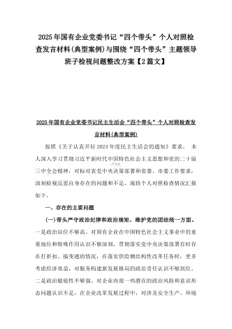 公司领导班子2025年围绕“四个带头”主题检视问题整改落实方案与乡镇党委书记“四个带头”个人对照检查材料2篇例文(含违纪违法典型案例剖析)