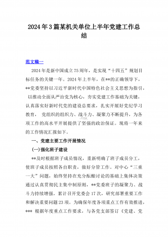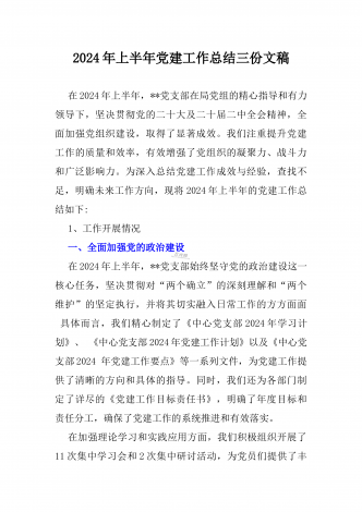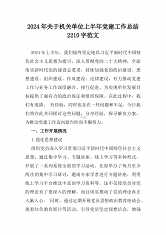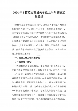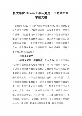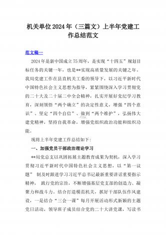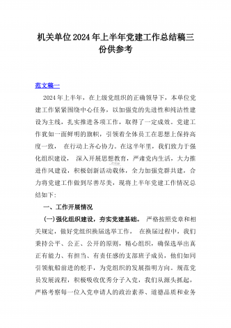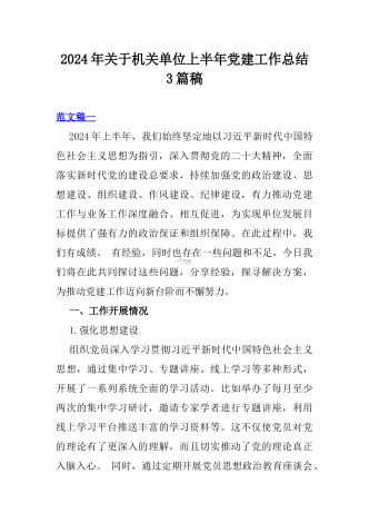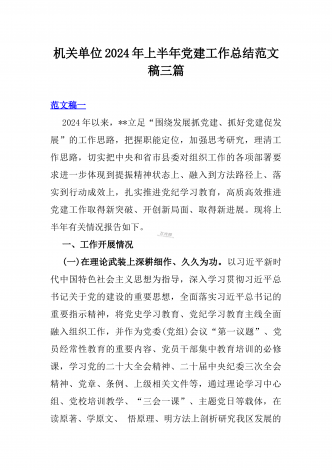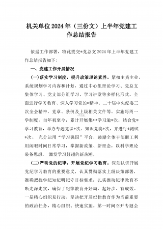 机关单位2024年上半年党建工作开展情况及下半年工作计划汇报材料三份