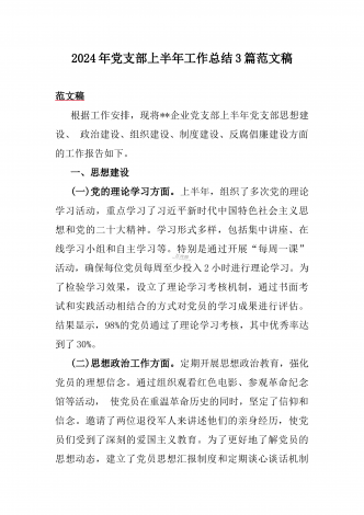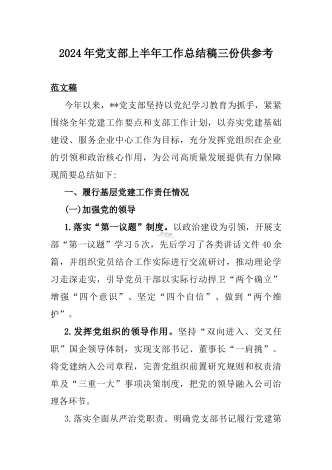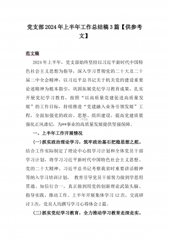 2024年高等院校上半年党建工作总结报告范文稿【2篇】供参考今年以来,学校党建工作以习近平新时代中国特色社会主义思想为指导,以宣传贯彻党的二十大精神为主题主线以“讲故事,学理论”活动为总牵引,持续推动基党组织建设,形成了党建和业务工作互助并进的良好格局,现将2024年上半年党建工作总结如下:(一)以学习教育为主线,提高党员队伍思想政治素质,抓好常规工作一是抓好“三会一课”学习活动。严格落实“三会一课”制度,开展“主题党日+”学习活动和各项专题学习活动。半年来,党支部共召开6次支部委员会,5次理论...
