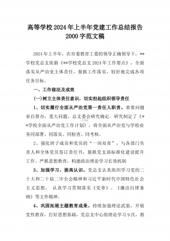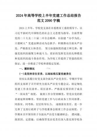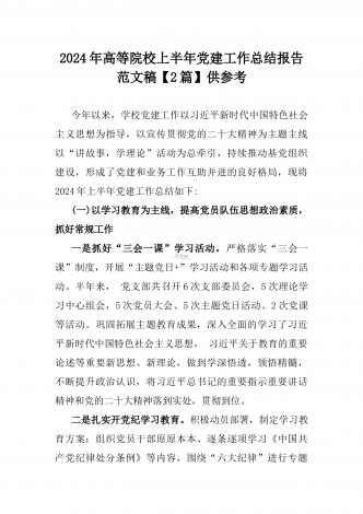 2024年高等院校上半年党建工作总结报告范文稿【2篇】供参考