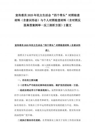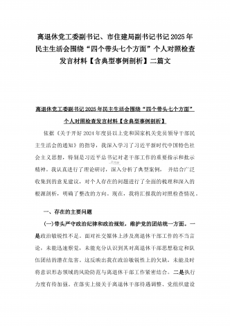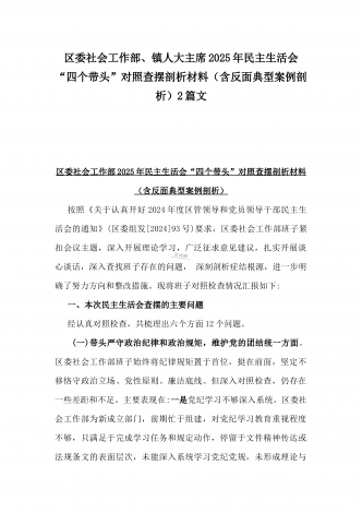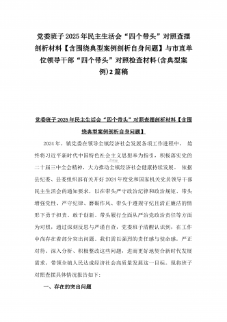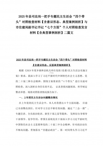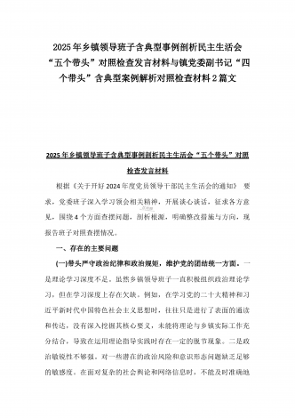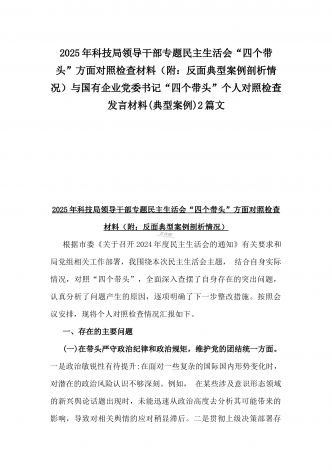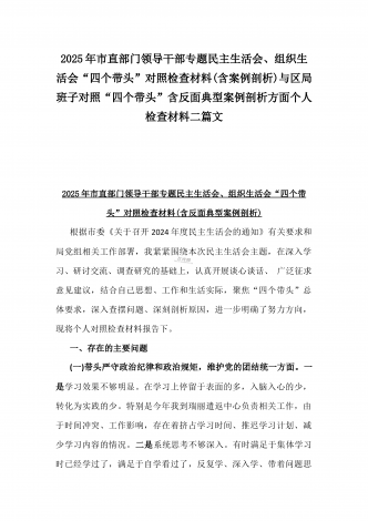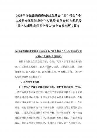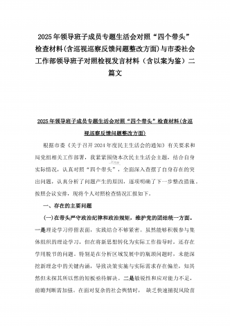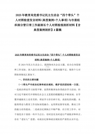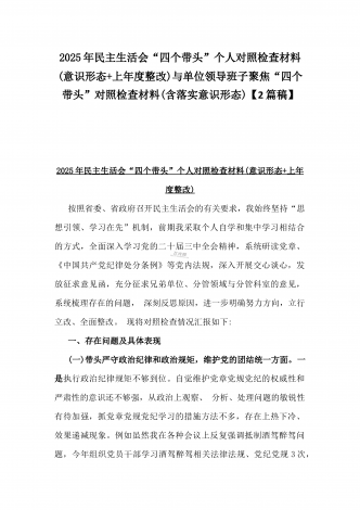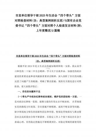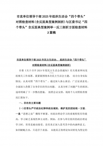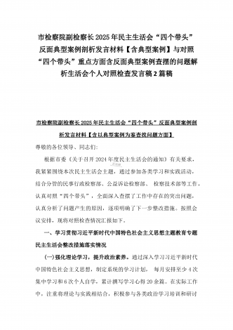 市检察院副检察长2025年民主生活会“四个带头”反面典型案例剖析发言材料【含典型案例】与对照“四个带头”重点方面含反面典型案例查摆的问题解析生活会个人对照检查发言稿2篇稿