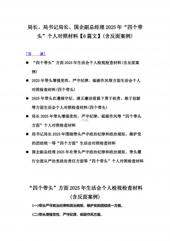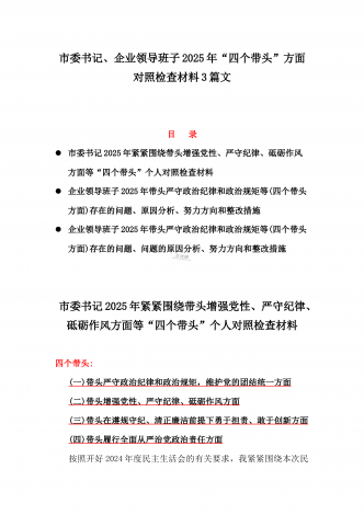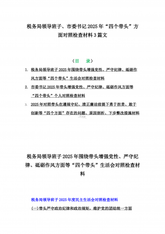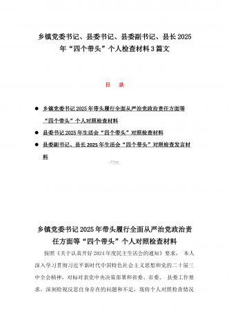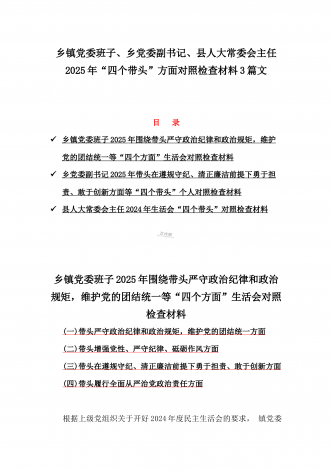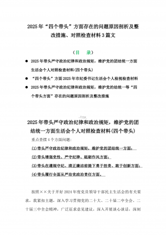 高校校长、乡镇长2025年生活会“四个带头方面”个人检视解析发言材料(存在的主要问题、原因分析、整改措施)3篇文(目录)1.2025年高校校长生活会“四个带头方面”个人对照检视解析发言材料(存在的主要问题、原因分析、整改措施)2.2025年对照带头严守政治纪律和政治规矩,维护党的团结统一方面等“四个带头方面”存在的问题原因剖析及今后努力方向和改进措施3.乡镇长2025年带头增强党性、严守纪律、砥砺作风方面等“四个带头”个人对照检查发言材料2025年高校校长生活会“四个带头方面”个人对照检视解析发...