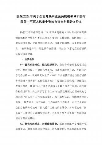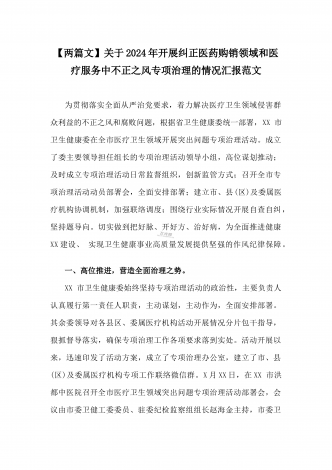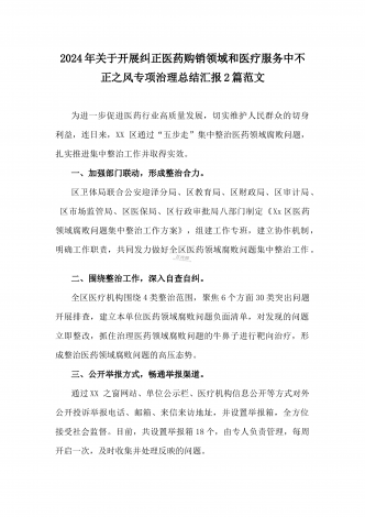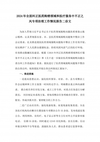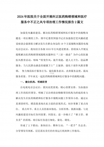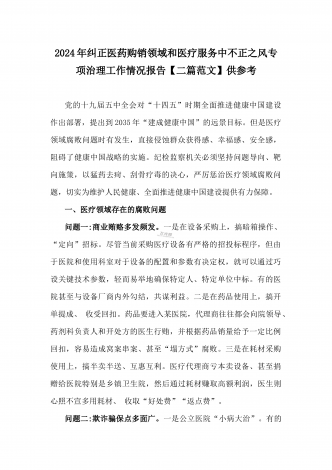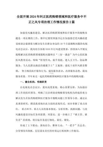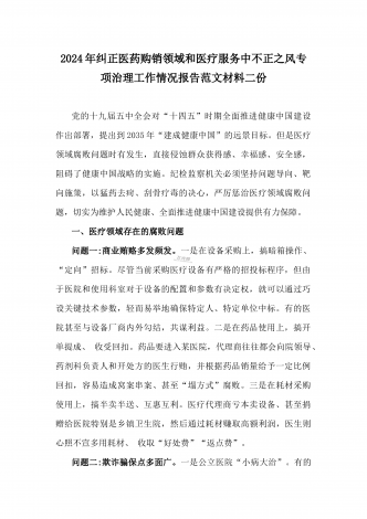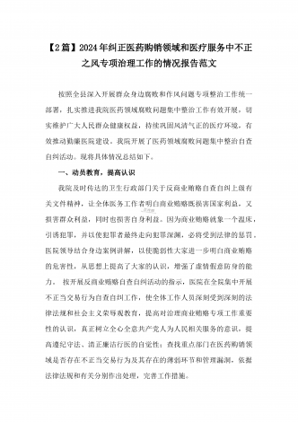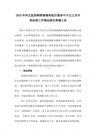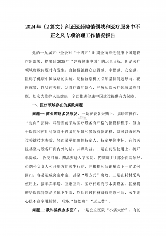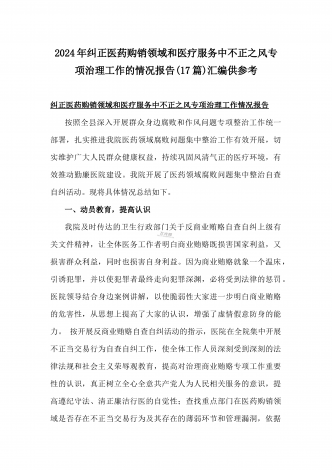 2024年纠正医药购销领域和医疗服务中不正之风专项治理工作的情况报告(17篇)汇编供参考