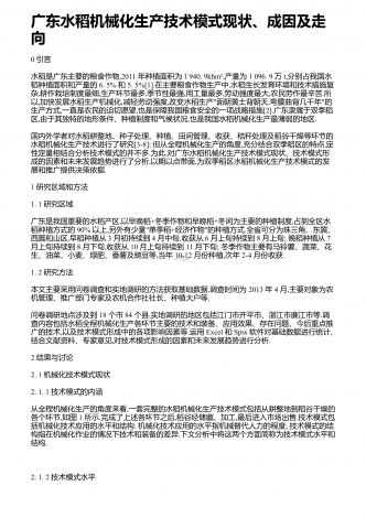 广东水稻机械化生产技术模式现状、成因及走向
