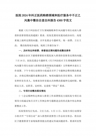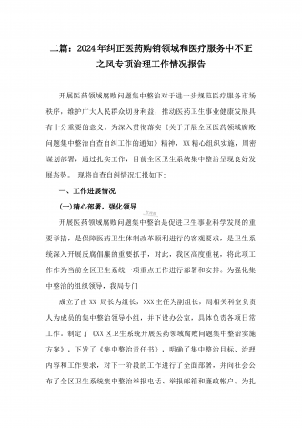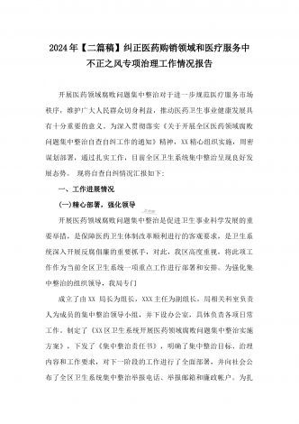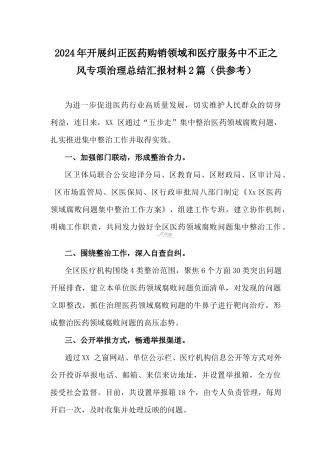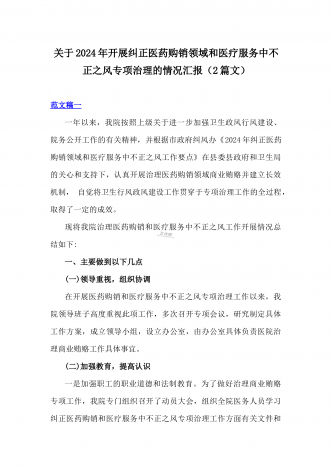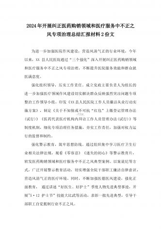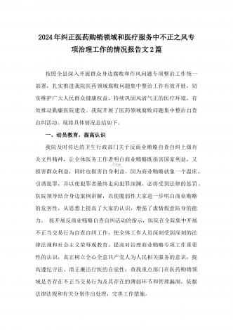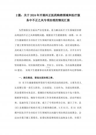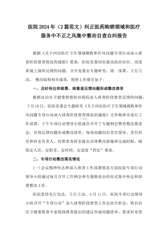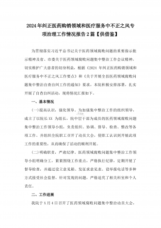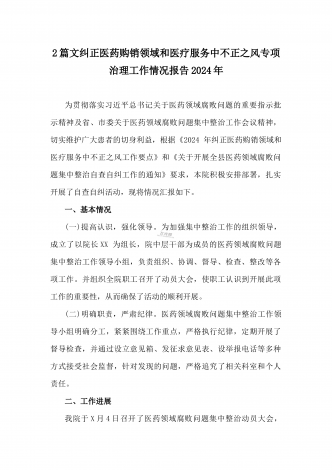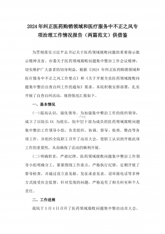 医院2024年开展纠正医药购销领域和医疗服务中不正之风专项治理工作情况报告(2份文)供参考