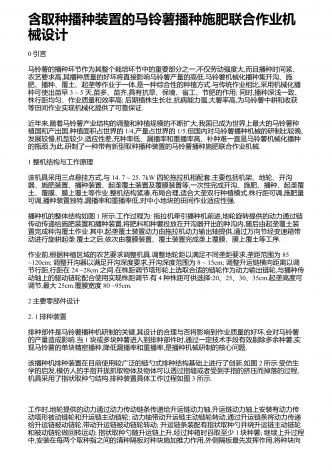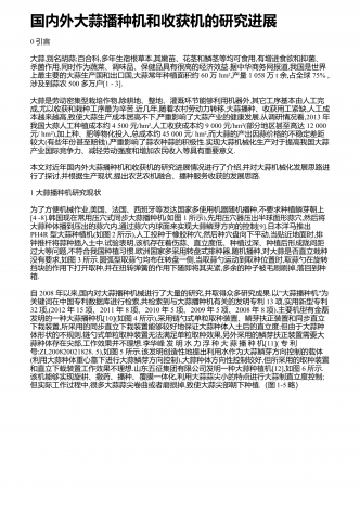 国内外大蒜播种机和收获机的研究进展0引言大蒜,别名胡蒜;百合科,多年生宿根草本,其嫩苗、花茎和鳞茎等均可食用,有增进食欲和抑菌、杀菌作用,同时作为蔬菜、调味品、保健品具有很高的经济效益.据中华商务网报道,我国是世界上最主要的大蒜生产国和出口国,大蒜常年种植面积约60万hm²,产量1058万t余,占全球75%,涉及到蒜农500多万户[1-3].大蒜是劳动密集型栽培作物,除耕地、整地、灌溉环节能够利用机器外,其它工序基本由人工完成,尤以收获和栽种工序最为辛苦.近几年,随着农村劳动力转移,大蒜播种、收...