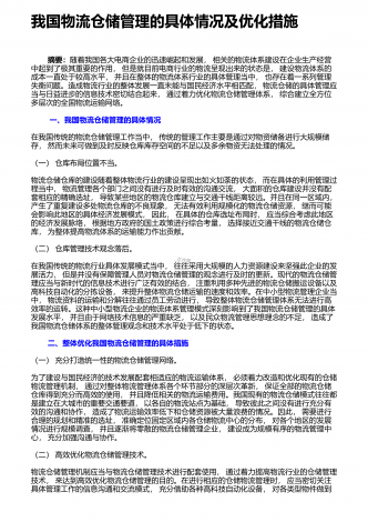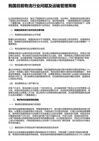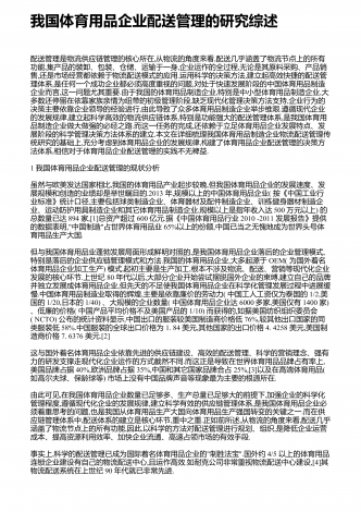 我国体育用品企业配送管理的研究综述配送管理是物流供应链管理的核心所在,从物流的角度来看,配送几乎涵盖了物流节点上的所有功能,集产品的装卸、包装、仓储、运输于一身,企业运作的全过程,无论是其原料采购、产品销售,还是市场经营都依赖于物流配送模式的应用.运用科学的决策方法,建立起高效快捷的配送管理体系,是任何一个成功企业都必须高度重视的问题,对处于快速发展阶段的中国体育用品制造企业而言,这一问题尤其重要.由于我国的体育用品制造企业,特别是中小型体育用品制造企业,大多数还停留在依靠家族亲情为纽带的初级管...