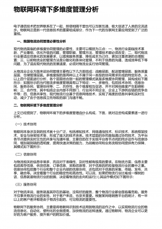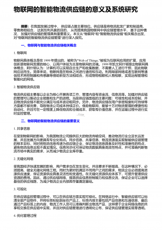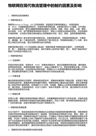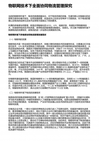 物联网技术下物流智能仓储系统构架及功能说明物联网超越了互联网形成了人与物之间、物与物之间更加全面的互联和互通.随着信息化技术的发展,将物联网技术应用到现代物流业中支持国内商业发展的重要性越发凸显[1].电子商务飞速发展所代表的中国新经济,急待构建更大规模、更高效率、更完善的智能型网络、更优质服务的社会化智能物流基础设施.2013年的马云退而不休,中国智能物流网络(ChinaSmartLogisticNetwork,简称CSN)成为阿里巴巴庞大商业帝国的下一核心.中国智能骨干网CSN体系,将通过自...