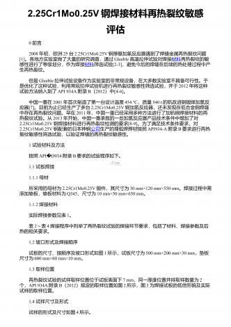 2.25Cr1Mo0.25V钢焊接材料再热裂纹敏感评估 0 前言 2008年初,欧洲25台2.25Cr1Mo0.25V钢厚壁加氢反应器遇到了焊缝金属再热裂纹问题[1]。各地方实验室做了大量的研究调查,通过Gleeble高温拉伸试验对焊接材料再热裂纹的敏感性进行了等级划分,作为焊接材料筛选试验[2-3],避免今后的焊缝在后续的热处理过程中产生再热裂纹。 但是Gleeble拉伸试验设备作为实验室的非常规设备,在大多数实验室不具备可行性。于是优化了这种试验,利用常规拉伸试验机进行再热裂纹敏感性筛...