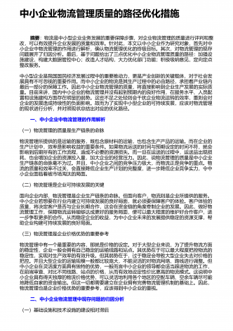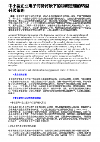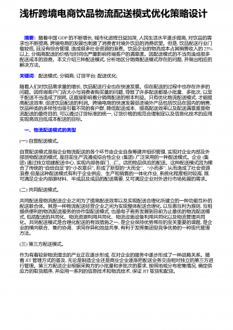 浅析跨境电商饮品物流配送模式优化策略设计 摘要:随着中国GDP的不断增长,城市化进程日益加深,人民生活水平逐步提高,对饮品的需求也不断提高,跨境电商的发展也刺激了消费者对境外饮品的消费欲望。但是,饮品配送行业门槛较低,且没有综合管理,造成很多社会资源的浪费。饮品企业的物流成本占其销售收入的25%以上,分销商配送的价格与时间也严重影响终端客户的满意度。因配送模式的不当而造成很多配送成本的浪费。本文介绍三种配送模式,分析地区分销商配送模式存在的问题,并做出相应的解决方法。关键词:配送模式;分销商;订...
