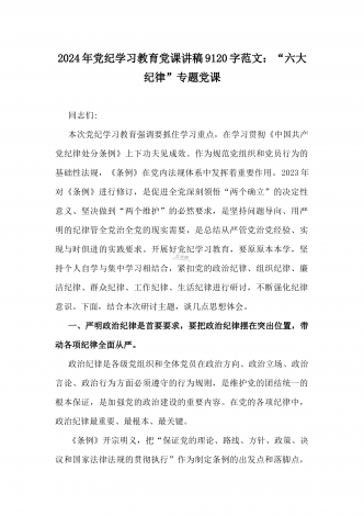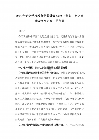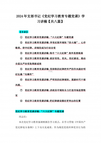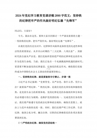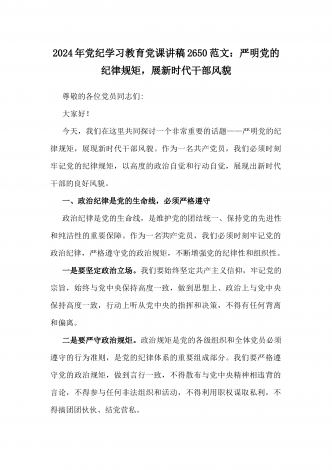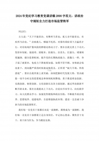 2024年党纪学习教育党课讲稿:学党纪筑牢规矩“防火墙”,心存敬畏,使守纪律、讲规矩成为行动自觉与抓好党性、党风、党纪建设,推动全面从严治党取得新成效【两篇文】2024年党纪学习教育党课讲稿:学党纪筑牢规矩“防火墙”,心存敬畏,使守纪律、讲规矩成为行动自觉同志们:经党中央同意,自2024年4月至7月在全党开展党纪学习教育。这次党纪学习教育,是加强党的纪律建设、推动全面从严治党向纵深发展的重要举措。心有所戒,行有所止。作为党员干部,不管在什么岗位,都应当把纪律挺在前面,时刻绷紧纪律之弦、筑牢作风之...