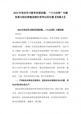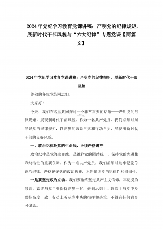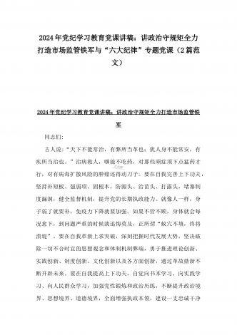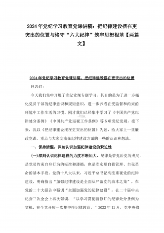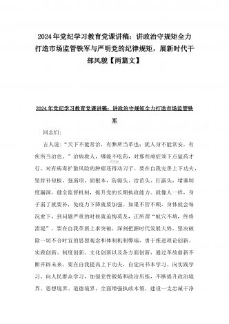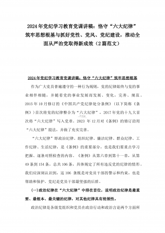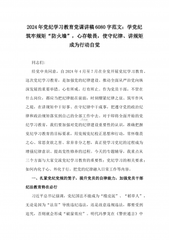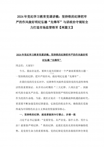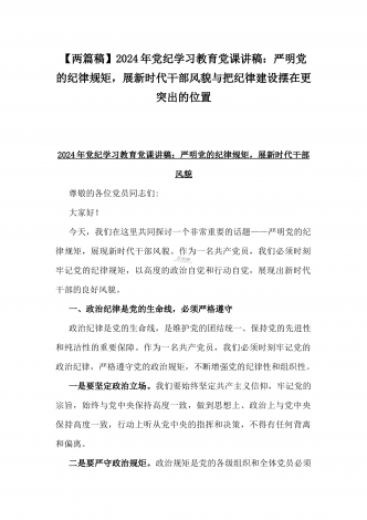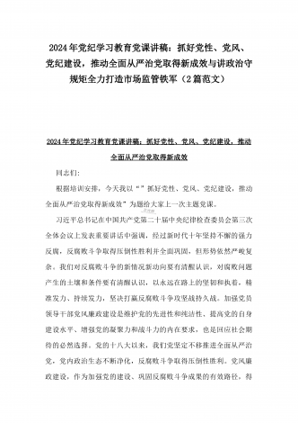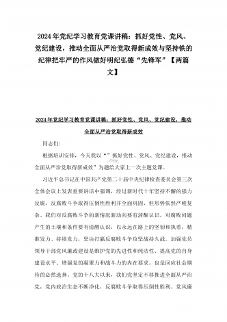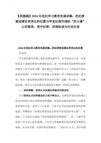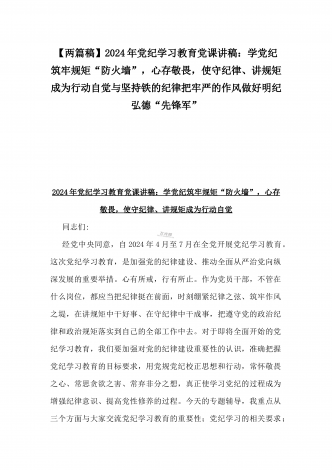 2024年党纪学习教育党课讲稿:学党纪筑牢规矩“防火墙”,心存敬畏,使守纪律、讲规矩成为行动自觉与抓好党性、党风、党纪建设,推动全面从严治党取得新成效【两篇文】