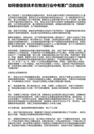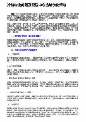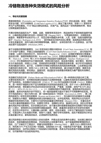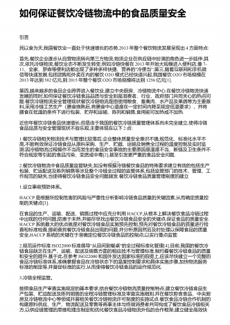 如何保证餐饮冷链物流中的食品质量安全引言民以食为天,我国餐饮业一直处于快速增长的态势,2013年整个餐饮物流发展呈现出4方面特点:首先,餐饮企业逐步从自营物流转向第三方物流,物流企业在供应链中扮演的角色进一步延伸;其次,依托冷链物流,餐饮业态不断发生转变,例如冷链快餐在2013年开始大规模进入便利店,像7-11、全家、罗森等便利店都出现了多种多样快捷、营养的"冷便当";第三,随着互联网和手机微信等快速发展,包括团购和外卖在内的餐饮O2O模式已经快速兴起,我国餐饮O2O市场规模在2013年达到58...