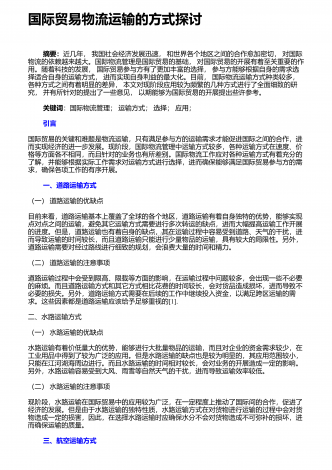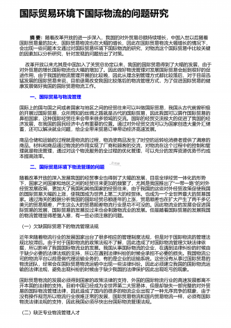 海口市绿色物流配送存在的问题与建议 摘 要:绿色物流的发展对环境保护和资源节约起到重要作用。作为国家生态文明试验区,海口市理应发展好城市绿色物流,为海南发展国家生态文明试验区做出贡献,为全省乃至全国做出示范。文章从物流包装和运输两个环节进行考察,分析海口市物流绿色配送现状及存在的问题,探究问题的根源,进而在此基础上提出有效的解决方海口市;物流配送;绿色环保;近年来,全球环境恶化迫使人类静思本应对大自然的敬畏之心,反思对环境的保护和资源的节约利用等方面的不足。快递业是现代服务业的重要组成...