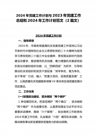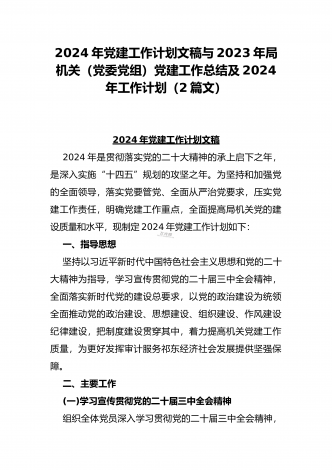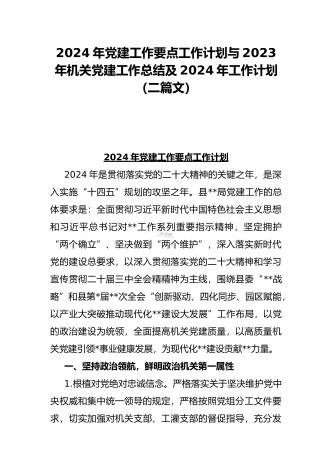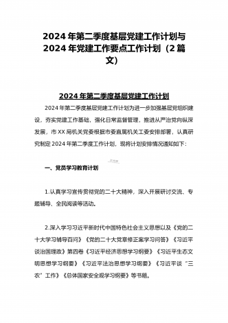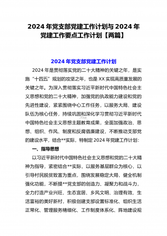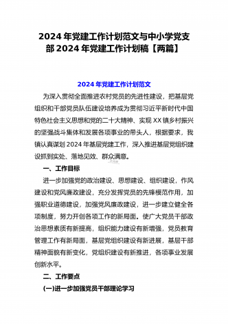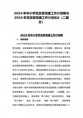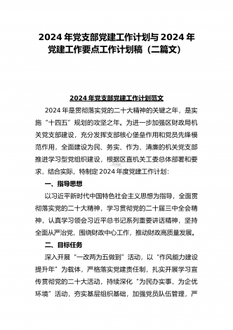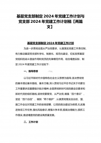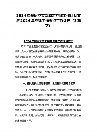 基层党支部制定2024年党建工作计划与党支部2024年党建工作计划稿【两篇文】