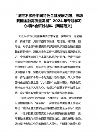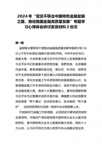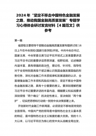 2024年“坚定不移走中国特色金融发展之路,推动我国金融高质量发展”专题学习心得体会研讨发言材料【4篇范文】供参考