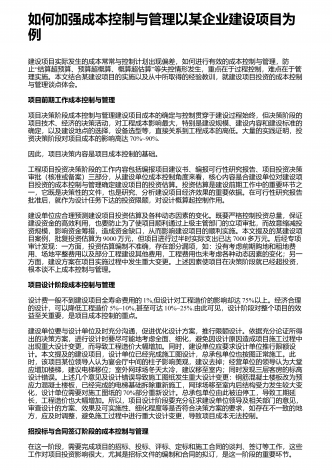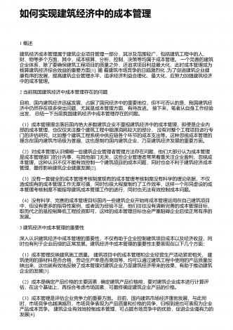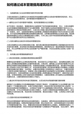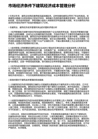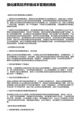 探讨建筑经济管理现状及有效管理措施摘要:建筑工程招投标工作具有十分重要的作用,不但推动社会发展,还能够在很大程度上净化建筑环境,为施工单位创造合适的条件,使其处于比较公平的竞争环境中,进而有效降低施工成本,改善施工质量,同时降低贪污现象的发生。本文首先阐述了招投标工作中建筑经济管理的重要性,然后介绍了建筑经济管理现状,最后提出建筑经济管理的有效措施,希望能够为建筑企业做好该项工作提供参考建议。近年来,世界经济一体化不断推进,我国经济获得迅速发展,与此同时,我国建筑企业也获得很大发展,同时建筑企业...