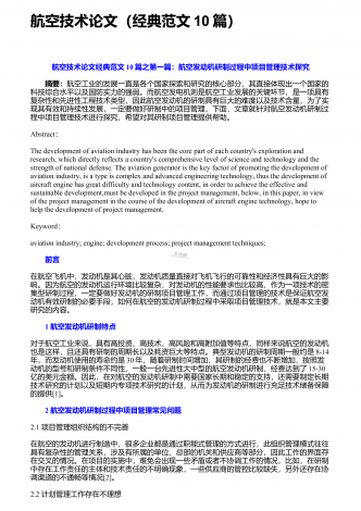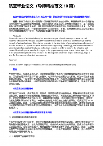 航空运输论文(研究参考范文10篇)