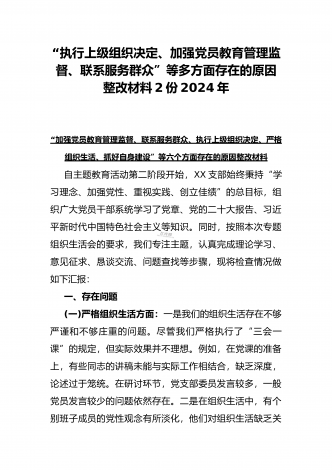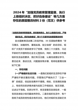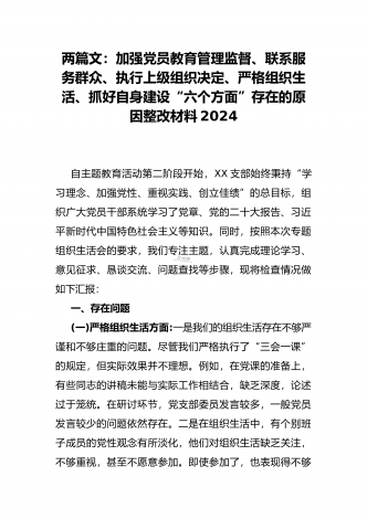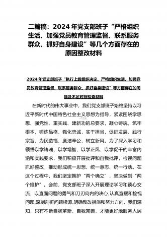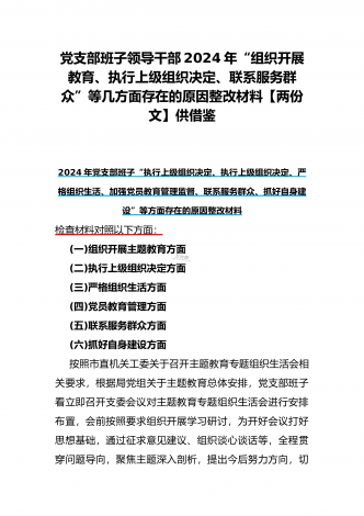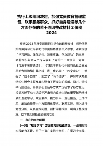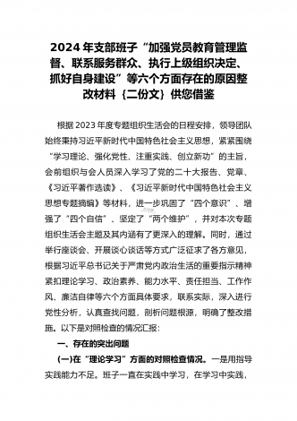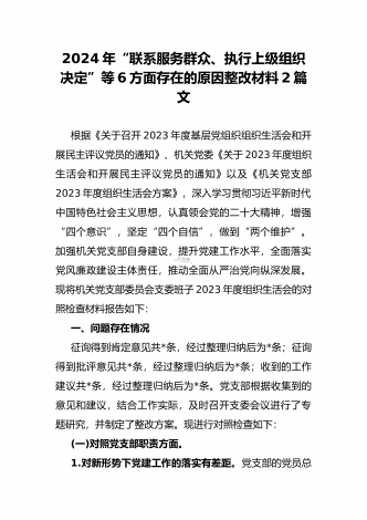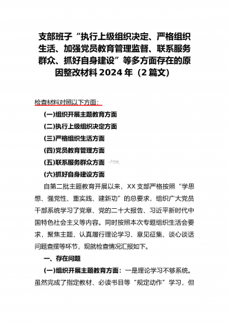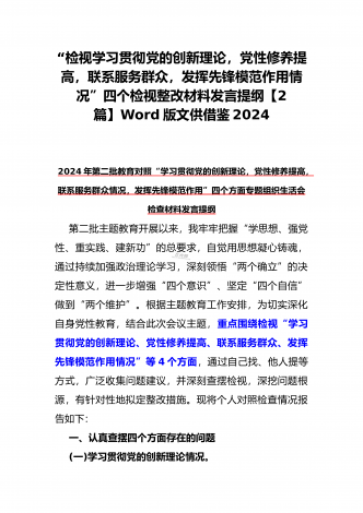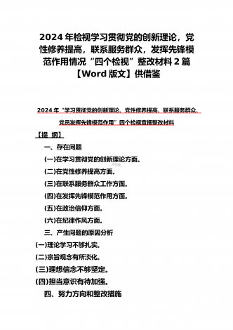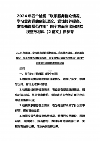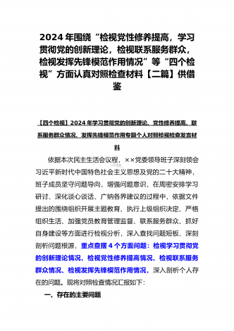 “4个检视”2024年围绕“检视学习贯彻党的创新理论,检视联系服务群众,检视党性修养提高,检视发挥先锋模范作用情况”等方面突出问题检视整改材料【2篇Word版文】供借鉴