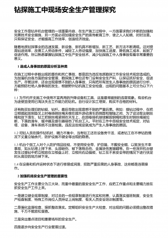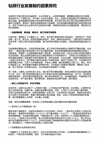 深孔岩心钻探中孔壁稳定性与设备问题摘要:在深孔岩心钻探过程中,由于其孔深增加,这也使钻孔难度和钻进成本也会随之增加,因此在深孔岩心钻探过程中,对于钻探技术人员和施工人员具有较高的要求。在具体钻探过程中,不仅要注意孔壁稳定性,同时还要掌握深孔岩心钻探时设备的具体应用技术,确保钻探工作的有序开展。相较于普遍岩心钻探,深孔岩心钻探难度更大,在钻探开始之前,需要科学对应力、孔隙压力、坍塌压力及破裂压力进行预测,并采用适宜的钻探技术,以此来确保深孔钻探的高效、安全进行,并实现钻探成本的最小化。 1 深孔...