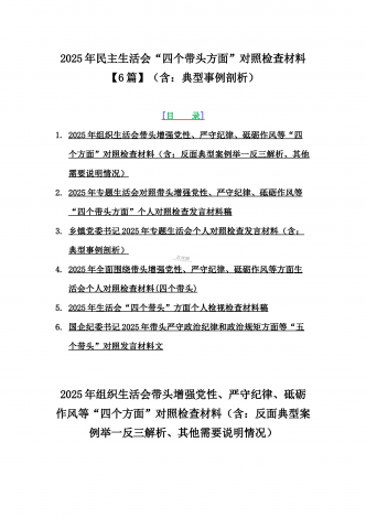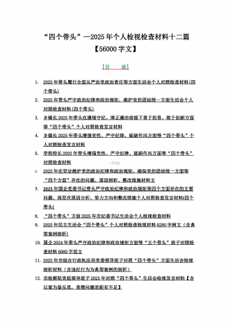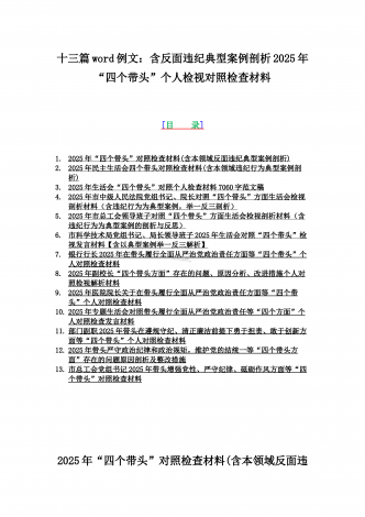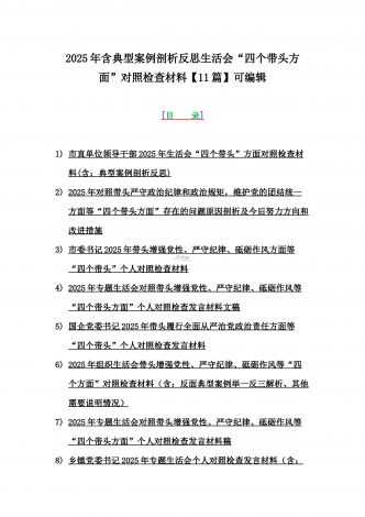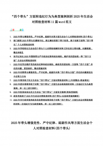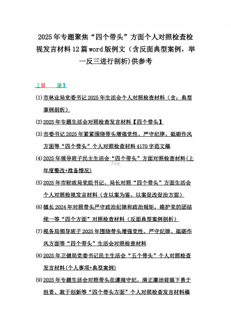 2025年专题聚焦“四个带头”方面个人对照检查检视发言材料12篇word版例文(含反面典型案例,举一反三进行剖析)供参考