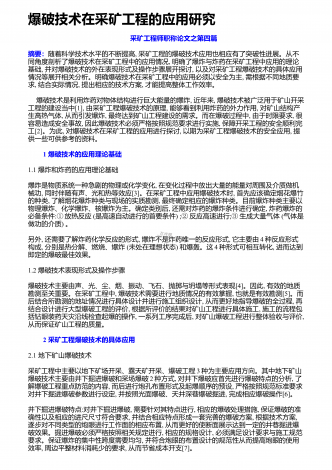 爆破技术在采矿工程的应用研究