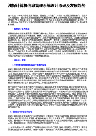 浅探计算机信息管理系统设计原理及发展趋势