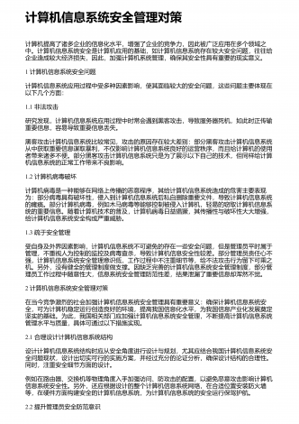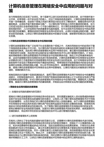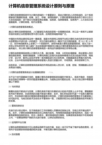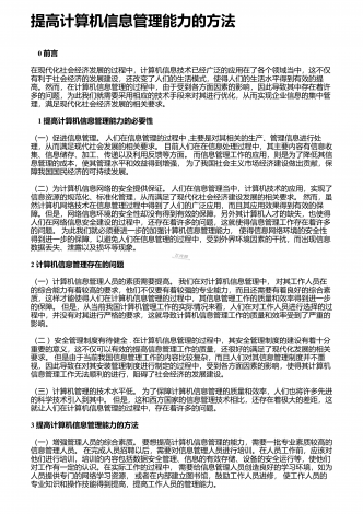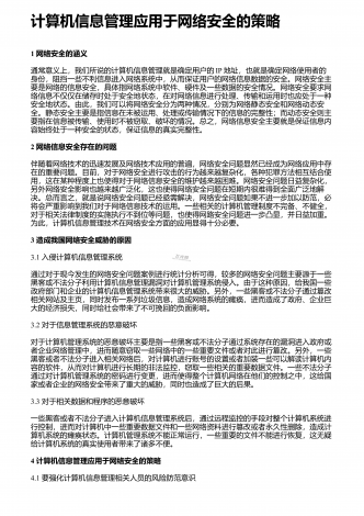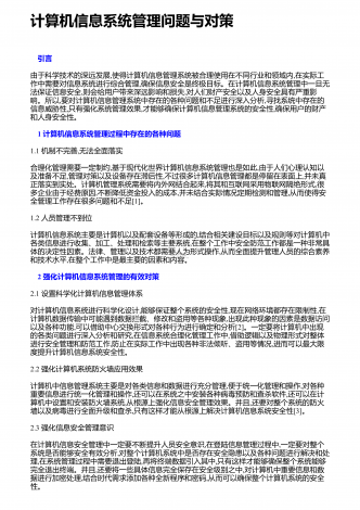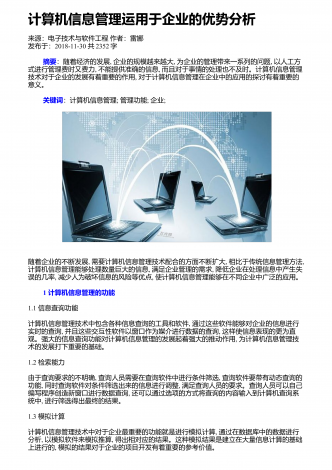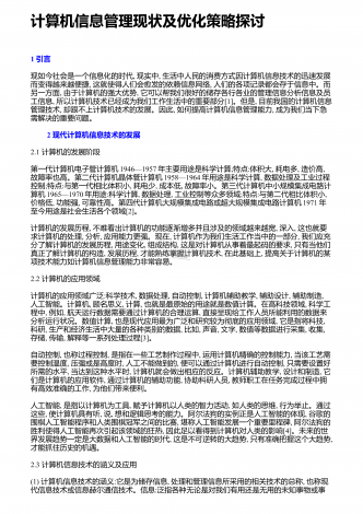 计算机信息管理现状及优化策略探讨1引言现如今社会是一个信息化的时代,现实中,生活中人民的消费方式因计算机信息技术的迅速发展而变得越来越便捷,这就使得人们会愈发的依赖信息网络,人们的各项记录都会存于信息中。而另一方面,由于计算机的强大优势,它可以帮我们很好的储存各行各业的管理信息分析信息及员工信息,所以计算机技术已经成为我们工作生活中的重要部分[1]。但是,目前我国的计算机信息管理技术,却跟不上计算机技术的发展。因此,如何提高计算机信息管理能力,成为我们当下急需解决的重要问题。2现代计算机信息技术...