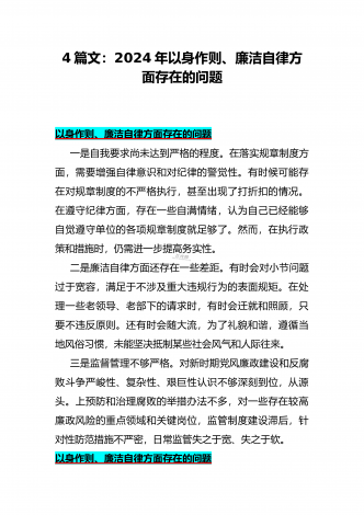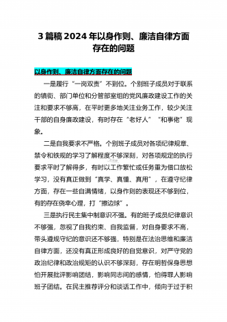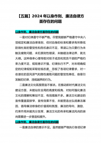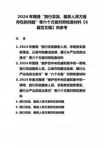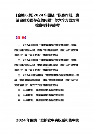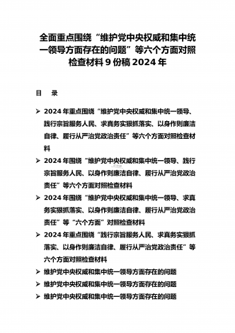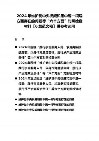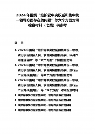 2024年维护党中央权威和集中统一领导方面存在的问题等“六个方面”对照检查材料【6篇范文稿】供参考选用