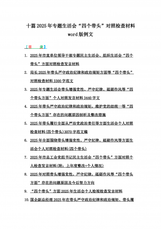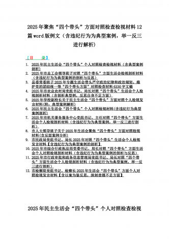 2025年专题生活会聚焦“四个带头”方面个人对照检查检视发言材料12篇word版例文(含典型案例,举一反三进行剖析)供参考