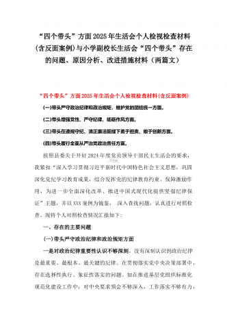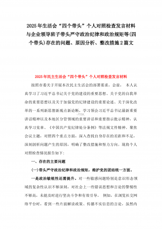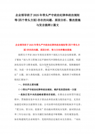 企业领导班子2025年带头严守政治纪律和政治规矩,维护党的团结统一等“四个带头”存在的问题、原因剖析、下步整改措施与个人检视发言材料【违纪行为典型案例剖析】2篇文