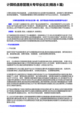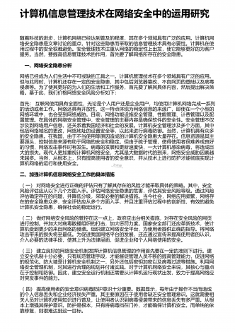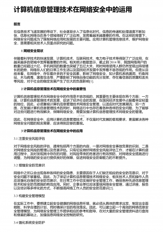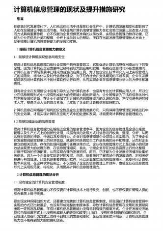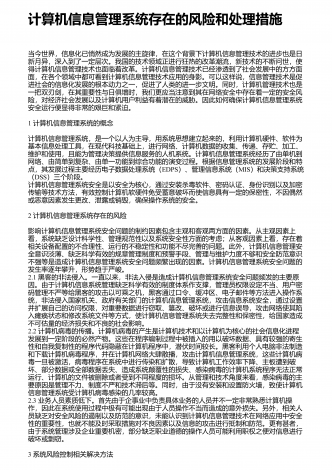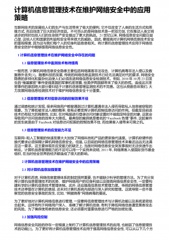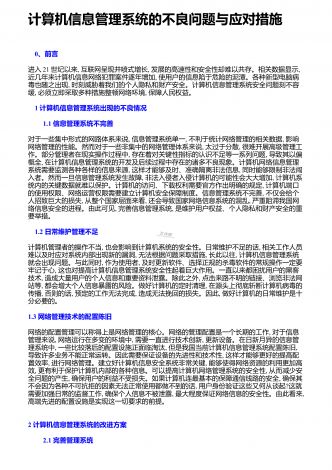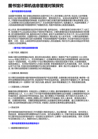 图书馆计算机信息管理对策探究 1 图书馆管理存在的问题说到图书馆管理,我们多数会想到馆长及图书馆工作人员在管理上的作用,但这些人如何管理,如何让他们更好地管理,还是需要探索些更好、更有效的方法。全球化的进展带来了信息化时代,不管图书馆的管理是何种制度,在信息时代都已经毫无疑问地需要依靠计算信息管理,因为人工的管理已经无法满足信息化时代了,在全球信息开放的时代,信息量巨大,内容种类繁多,广大的阅读者都给图书馆管理带来了很重的负担,而图书馆的核心就是信息服务。综上所述,图书馆管理现阶段还存在很多问题...
