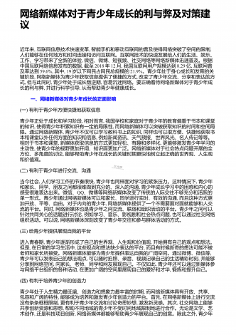 网络新媒体对于青少年成长的利与弊及对策建议