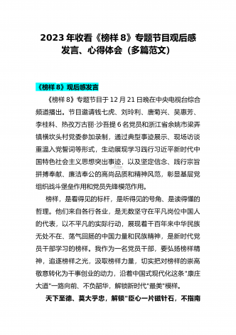 2023年认真学习《榜样8》精神全面激发奋进动力先进人物事迹专题学习ppt课件【附:观后心得体会多篇稿】