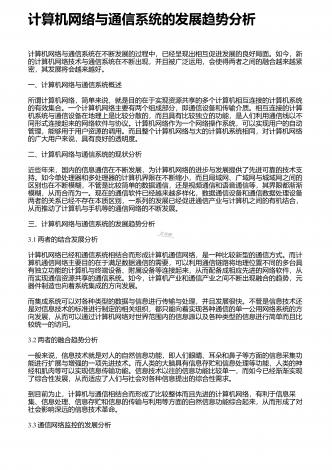 计算机网络系统的研究框架 摘要:计算机网络作为现代生活不可缺少的要素,使得计算机等通信设备无处不在,同时带动了新科技的发展和颠覆。当代人们的生产和生活方式得到了巨大的转变,社会面貌焕然一新,逐“渐发展壮大的互联网+”,——这些功劳都要归功于强大的网络因特网。生活在网络化、智能化的社会,人们对计算机网络的认识越来越重要,本文从因特网的组成和发展开始,详细探讨了计算机网络类别及性能,最后着重分析了网络的体系结构,并浅谈了下一代互联网的发展。通过阐述计算机网络及其体系结构,旨在为系统研究和了解计算机网...