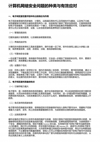 计算机网络安全问题的现况及相应的处理手段