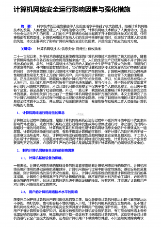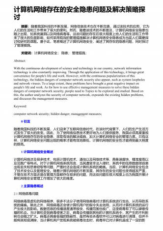 计算机网络安全问题的现况及相应的处理手段0引言计算机网络现在越来越的被人们运用日常生活中去,但是计算机网络的安全隐患也越来越明显.下面,我们就进一步的探讨一下计算机网络安全问题的现状以及相应的解决措施.1计算机网络的安全隐患.1.1安全漏洞随着新软件的不断开发和研究,渐渐的就会产生很多的问题,现在是没有人和一种工具可以完全的解决漏洞问题,所以对漏洞的处理就变得比较复杂.其中最为特别的就是缓冲区溢出,这个漏洞很容易被黑客进行利用,有的电脑系统对缓冲区不进行检验,然后进行数据的传输,把一些超出了的东...
