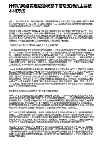 计算机网络实现应急状态下信息支持的主要技术和方法