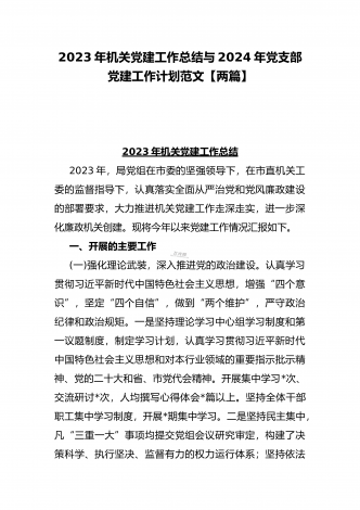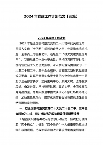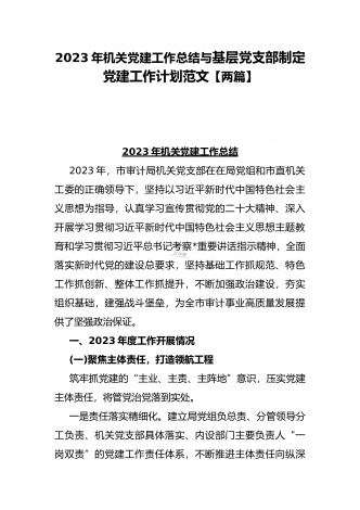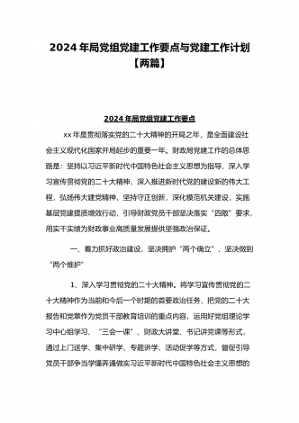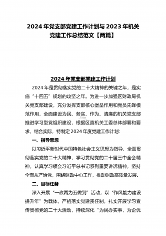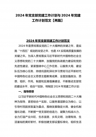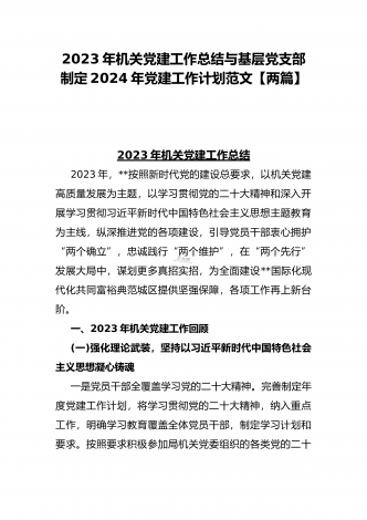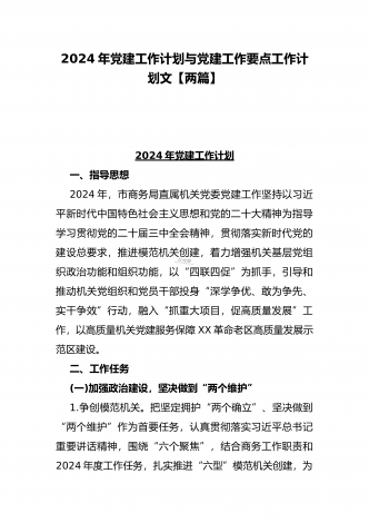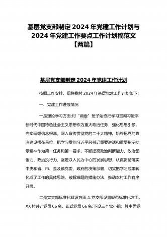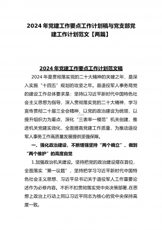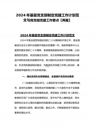 基层党支部制定2024年党建工作计划与2024年党建工作要点工作计划稿范文【两篇】