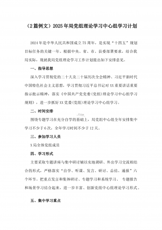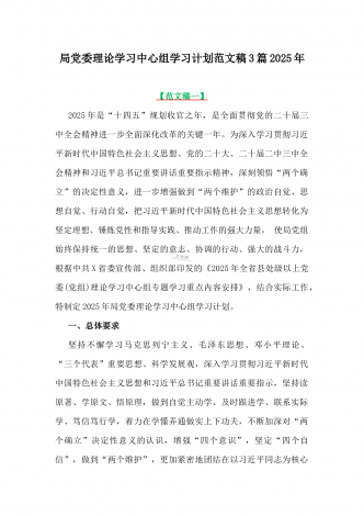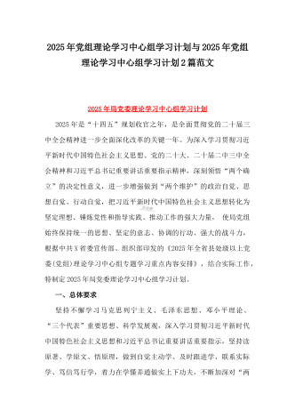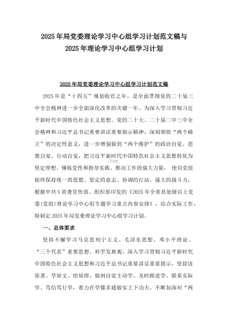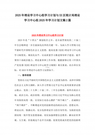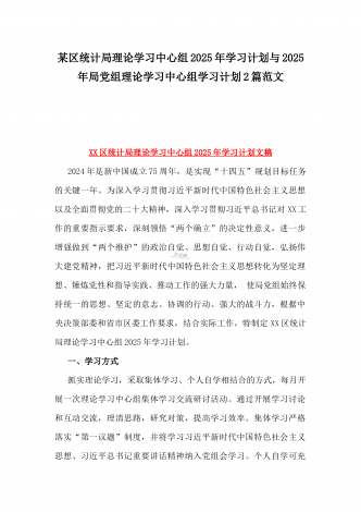 某区统计局理论学习中心组2025年学习计划与2025年局党组理论学习中心组学习计划2篇范文