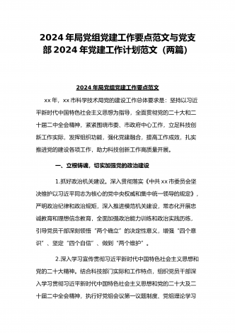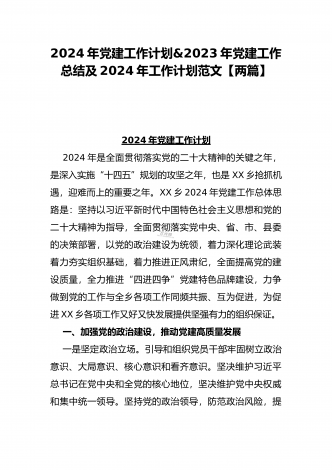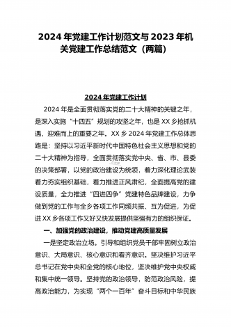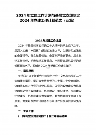 基层党支部制定2024年党建工作计划与2023年机关党建工作总结范范文【两篇】
