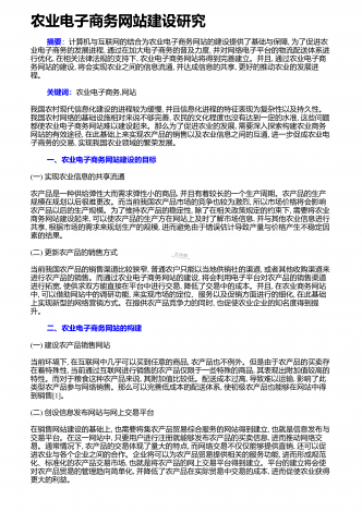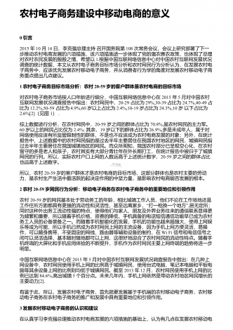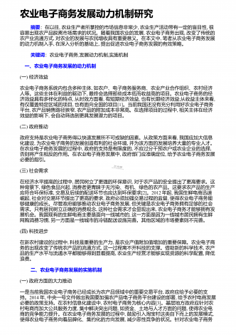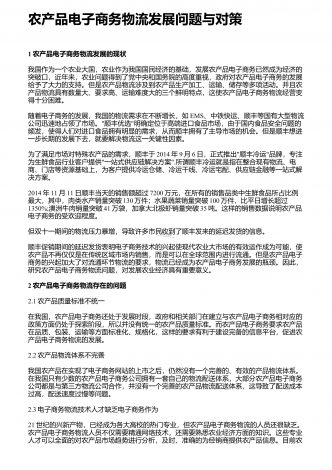 农业电子商务发展问题及优化策略研究 近几十年来,随着互联网技术的发展,农业电子商务得以形成,并在近几年得到较大提升。但农业电子商务发展至今,仍有物流、发展模式及人才等方面的弊端,对农业电子商务的发展造成了一定的消极影响。通过分析现状及存在的问题,结合我国农业发展的特点,提出改进的措施,对农业电子商务的未来发展作积极展望。 1 发展现状及存在的问题1.1物流短板普遍存在。一直以来,由于历史发展的原因,我国农村地区较多,且农业发展较为落后。虽然随着电子商务的发展,农业电子商务逐渐成型,但农村地区大...