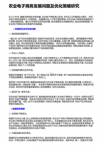 农业电子商务发展问题及优化策略研究