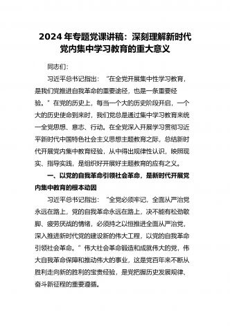 2024年专题党课讲稿:深刻理解新时代党内集中学习教育的重大意义