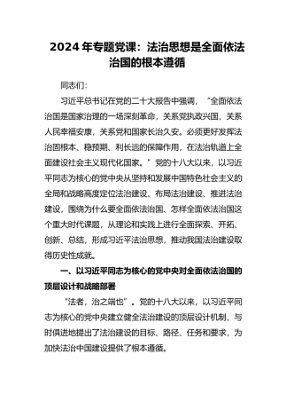 2024年专题党课讲稿:深刻理解新时代党内集中学习教育的重大意义 同志们: 习近平总书记指出:“在全党开展集中性学习教育,是我们党推进自我革命的重要途径,也是一条重要经验。”在党的历史上,每当一个大的历史阶段开启,一个大的历史使命到来时,我们党总是通过集中学习教育来统一全党思想、意志、行动。在全党深入开展学习贯彻习近平新时代中国特色社会主义思想主题教育之际,总结新时代开展党内集中教育经验,从中得出规律性认识,映照现实、指导实践,是组织好开展好主题教育的应有之义。 一、以党的自我革命引领社会...